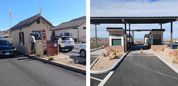 January 26, 2026 | Lori Rennie Out with the old … in with the new! The west entrance new fee stations to Joshua Tree National Park are open as of Friday evening on January 23, 2026. The old single fee station is now a thing of the past. With construction near full completion, the new 4-station entry is now open for use. The goal is to reduce lines and wait times.